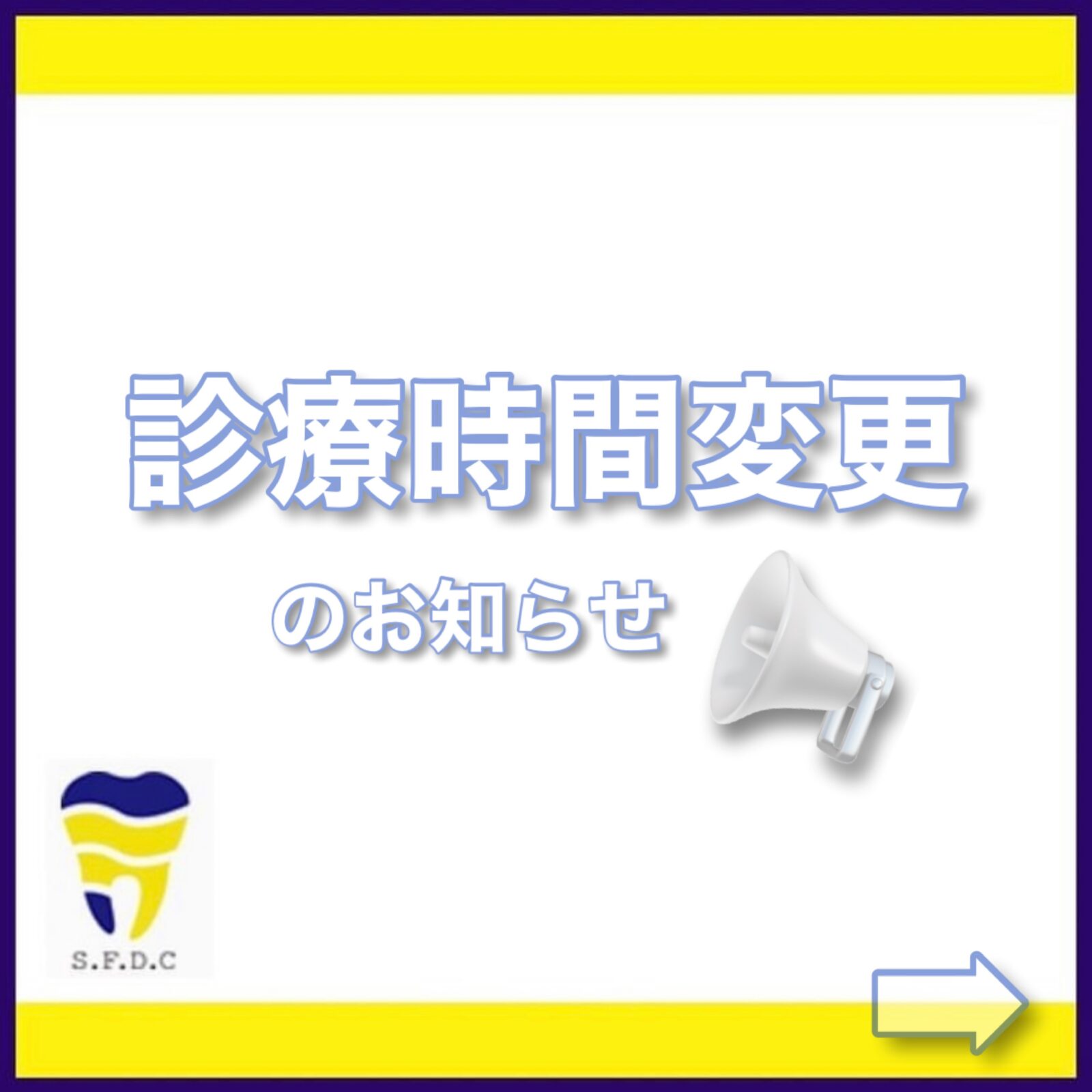 この度、8月25日(月)をもって、午後の診療時間を下記の通り変更させていただくこととなりました。