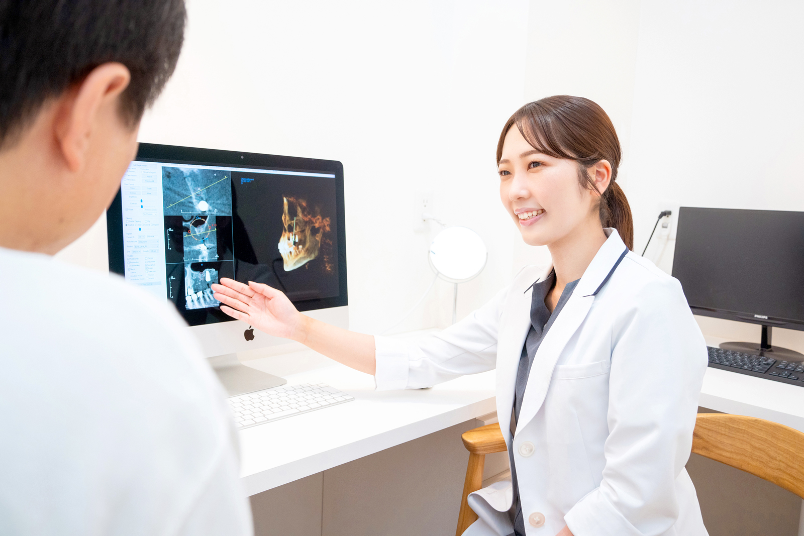 CTは立体的に撮影できる装置で、平面でのレントゲンと比べ、「見える」精度が異なります。例えば、顎の構造や血管、神経の位置などが立体的に把握でき、問題箇所の見落としも少なくなります。