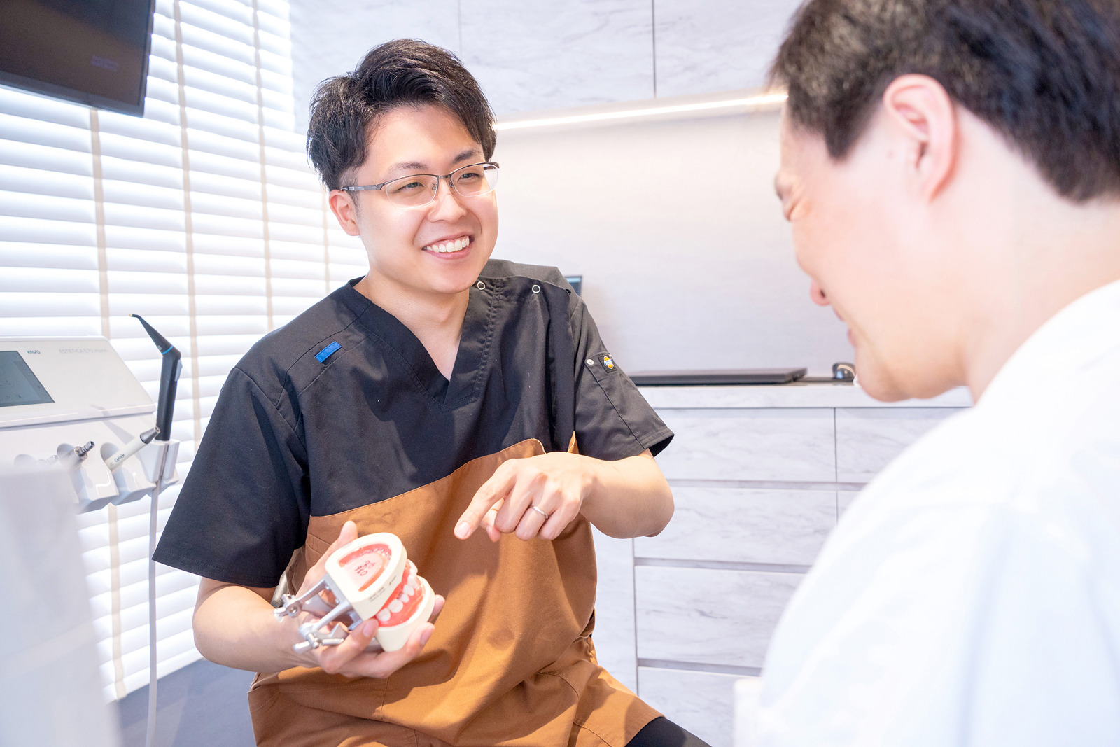 まず患者さんが何に困っているのかお聞きし、しっかり診査診断をした上で、治療プランを立てて、ご説明し、納得いただいてから治療を始めます。どんな些細なことでもお尋ねください。