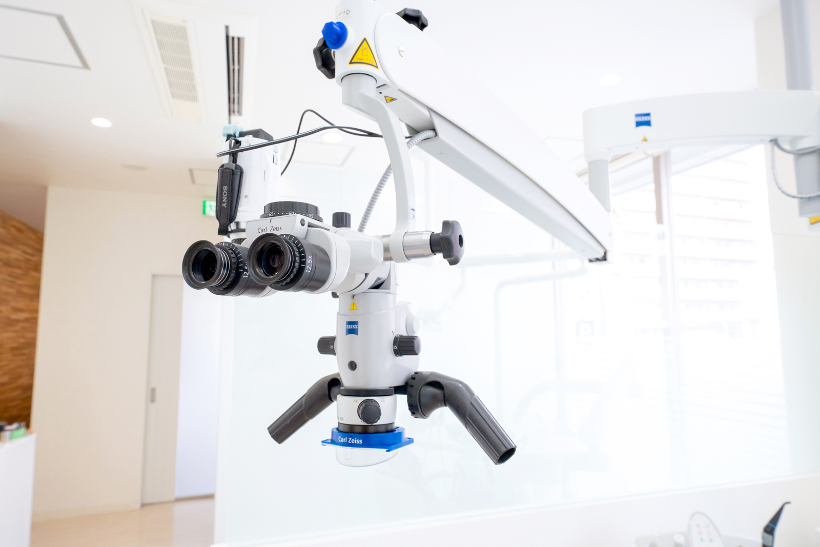 マイクロスコープとは、歯科用の顕微鏡です。これを使用すると、治療する部位が肉眼の10倍以上も拡大して「見る」ことができます。そのため、治療精度が格段と向上します。